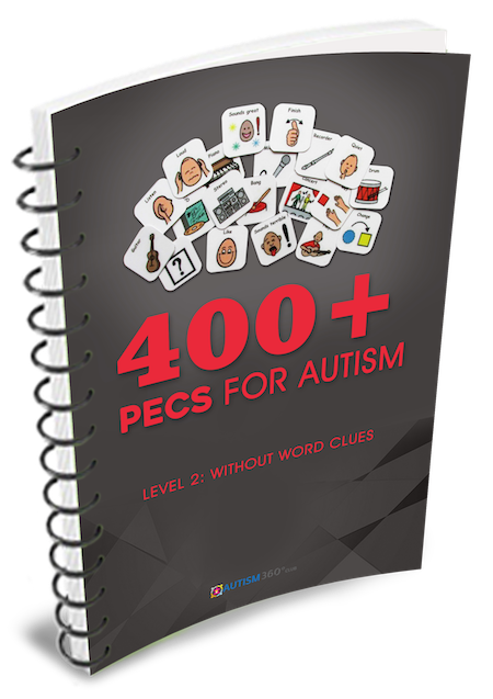 Up-level to without words to help your child memorize and learn. For kids who are unable to read, you can swap the order of Level 2 first and then teach them the written words using the Level 1 PECS